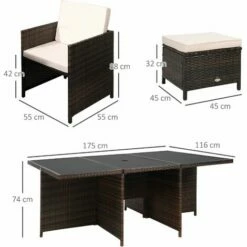 Outsunny 10 Pieces Rattan Sofa Set Table Stool Cushion Conservatory Wicker