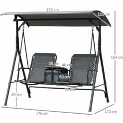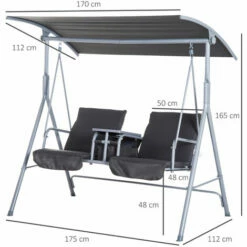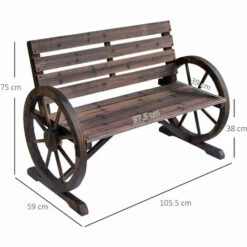Outsunny 2 Seater Garden Bench W/ Wheel-Shaped Armrests Carbonized Colour