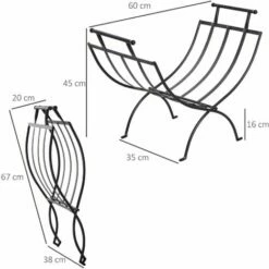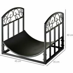 Outsunny Wrought Iron Inner Arced Wood Log Holder Indoor Outdoor Storage Black
