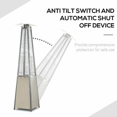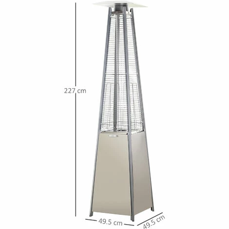 The Outsunny patio gas heaters is a great way of keeping warm during the cooler evenings and during winter. The propane gas heaters use a gas bottle and can warm up an area up to 10m³, the gas outdoor heater is made from stainless steel and has a safety netting to protect you from the flame. The pyramid patio heater is designed with ease of use with temperature control knob to get the most ideal setting and creates a warm heating source with the outdoor gas heater.