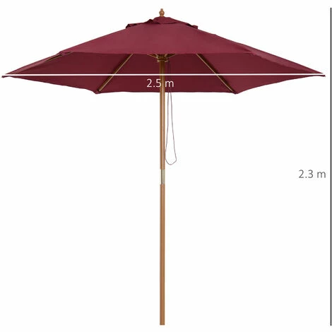 • 2.5m large parasol supported by 6 wooden ribs
