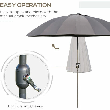 Keep yourself protected with parasols umbrellas from Outsunny. With a large polyester canopy, the balcony parasol offers plenty of shade underneath. The outdoor parasol is connected to a tough metal frame with 18 fibreglass ribs. Sunshades for garden with crank handle and tilt, which opens and closes the canopy smoothly and easily. Please note, that a base is not included. For a compatible base, search the following Outsunny SKUs: 84D-204V01, 84D-059, 84D-054 and 84D-050.