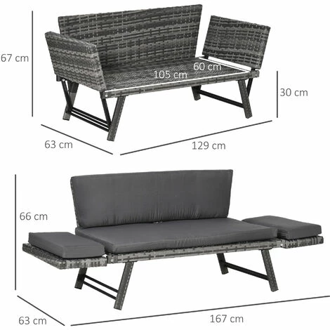 Make your outdoor times even better than before with this convertible sofa from Outsunny. A 2-in-1 design, it features side armrests which can be left up or down, giving you greater choice when it comes to choosing how you want to relax outdoors. For the underlying frame, reinforced steel is used to ensure ensuring strength and stability, with PE rattan hand woven around for a look which blends in with your garden effortlessly, whilst protecting the bed from light weather damage. It’s finished with thick padded cushions which ensure you’ll be resting comfortably all day long. A great way to laze a sunny afternoon away.