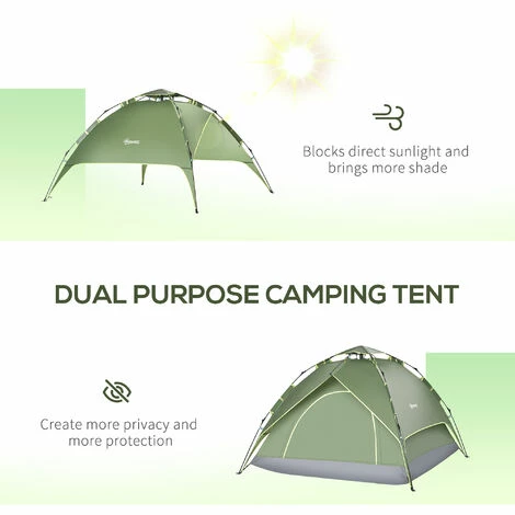 This double layer pop up camping tent from Outsunny is perfect for camping trips, festivals, hiking trips and lots more. With a 190T water-resistant polyester cloth and flexible fibre glass poles, you will keep nice and dry, with stakes included to keep this blackout tent steady against any light winds and blusters. Fitting three people comfortably, our dome shelter is double layered to keep you warm in colder temperatures and it is finished with mesh windows and two doors for easy access.