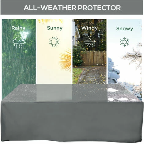 Protect your outdoor furniture in all weather conditions with this corner sofa cover from Outsunny. Made of high density oxford fabric, the rattan furniture covers features a PE coating which protects against mild water and UV seeping through and causing damage. Its lightweight formation is easy to put on and take, cutting out any struggle. This garden furniture cover is finished with pull cord fastenings for a tight and secure fit.
