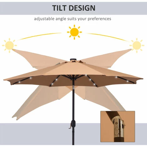 Sunny days are great, but sometimes you just need a little shade. Ensure you are covered on the hot and sunny days with this garden parasol with lights from Outsunny. This parasol umbrella with lights can protect you from the UV rays and light up the night with its 24 solar-powered LED lights. High-grade polyester and a metal pole are designed to withstand natural elements and ensure years of reliable use. This Outsunny Solar Umbrella makes your garden more comfortable and inviting even when night falls.
