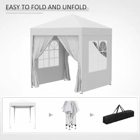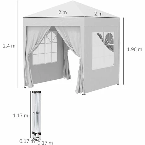 This New 2X2M Outdoor Gazebo is a great, no-fuss outdoor shelter. It is Ideal for family parties, weddings, picnics, sports events, outdoor vendors, craft fairs, job sites and camping trips. This easy up canopy provides easy set-up and take down in less than one minute. It also comes with a portable carrying case. This garden shelter has a high quality Powder Coated Steel Frame which has High Strength and is suited for winter time.