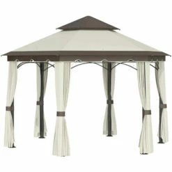 This garden pavilion is your best choice to relax and enjoy parties. The unique hexagonal polyester canopy, curtains and steady frame create a comfortable and privacy space. Its large sizing provides enough shelter for yourself and several other people. You can set up it in the garden, have a nice gathering with friends or family. Let this practical gazebo to improve your happiness and life quality.