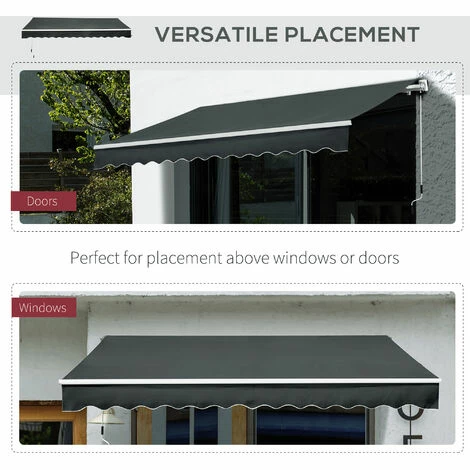 With a thick sun-shielding canopy fixed on an aluminium frame, this 3.5 x 2.5m window awning from Outsunny will give you all the shade you need this season. The manual design means you can set it up wherever needed – whether it’s above a door or window, and it easily mounts onto your chosen surface with all accessories included in the package. Finished with a crank handle for easy operation. It’s time to enjoy the beauty of the Summer more than ever before.