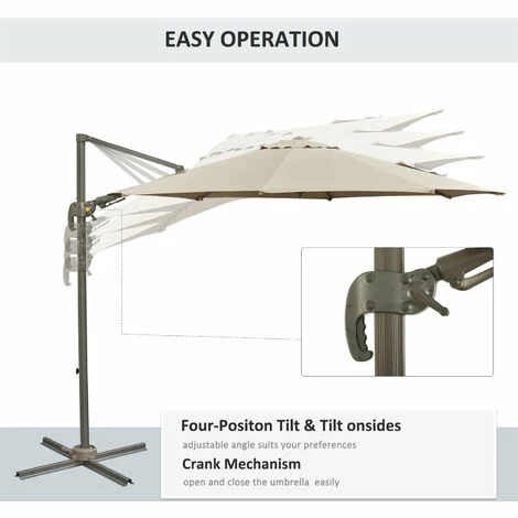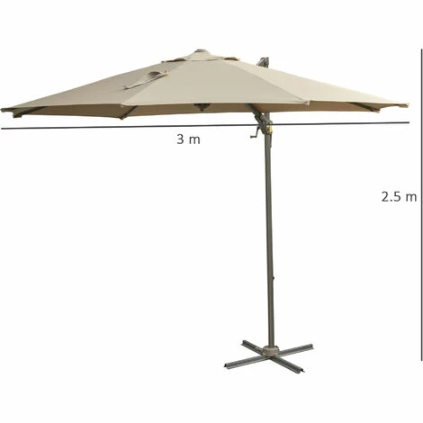 This Outsunny garden parasol with base included is a great solution for your outdoor living. With a large 3m x 2.5 m span it can cover a large area giving you enough shade from the sun. The angle can also be adjusted by raising and lowering, with the the ability to open and close the umbrella by using the crank handle. The umbrella can be angled in 4 positions and can also swivel for correct positioning. A great item to have as part of your outdoor living and will match any outdoor decor.