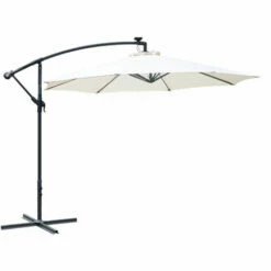 Make the summer evenings last longer with this garden parasol with base included from Outsunny. It is equipped with eight solar powered LED strips under the canopy, providing soft light when the sun goes down, without requiring a battery. The steel frame is strong so it stands steady