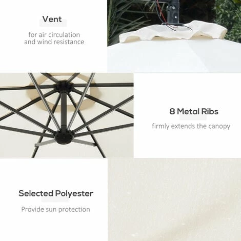 eight ribs attached to the canopy offer plenty of support. The garden umbrella parasol is finished with a crank handle to open and close the canopy quickly – perfect for when you need shade instantly.