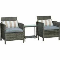 Make the right choice for the upcoming Summer season – choose this three-piece dining set from Outsunny for endless hours of comfort and joy. In a contrasting cream tone, thick cushions are placed on the seats for comfort, with a stylish striped bolster cushion also included for extra style – all with removable covers which can be washed clean to keep them fresh and hygienic. The set is completed with a matching two-tier table, with a tempered glass top for a chic finishing touch.