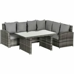 Bring everyone outdoors together this season with this small garden furniture from Outsunny. The conservatory furniture comes with two sofas and a large table – perfect for when guests come to visit. Each piece uses powder coated metal for the frame, wrapped in PE wicker for a garden-ready look which is durable and resistant to mild weather damage. The dining table is fitted with a tempered glass top for a solid and safe surface. Your home will soon become the go-to spot with this beautiful set.