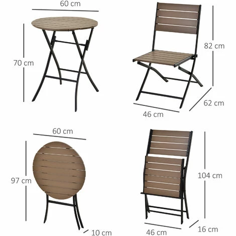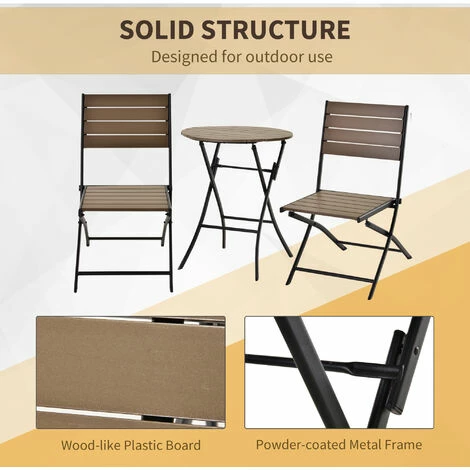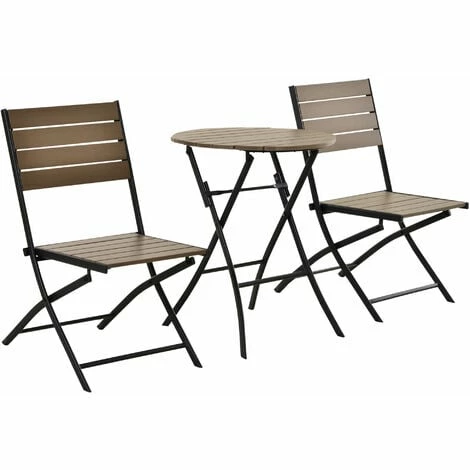 • Slatted plastic panels on table and chairs are easy to clean and durable, wood effect for style