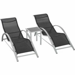 Refresh your outdoor space with the garden recliner chairs set of 3 Outsunny. Using metal for the frame of both chairs and a table, the structure is tough and durable, so it can be used every day. The sun loungers for garden are wrapped in breathable mesh for comfort and smoothness on the skin. The table comes with a thick glass top for a safe and secure holding place. Stylish and functional, this set is perfect for patios, gardens, balconies and any other outdoor space. Assembly is required.