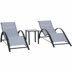 Refresh your outdoor space with the garden recliner chairs set of 3 Outsunny. Using metal for the frame of both chairs and a table, the structure is tough and durable, so it can be used every day. The sun loungers for garden are wrapped in breathable mesh for comfort and smoothness on the skin. The table comes with a thick glass top for a safe and secure holding place. Stylish and functional, this set is perfect for patios, gardens, balconies and any other outdoor space. Assembly is required.