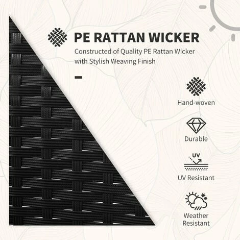 This rattan bistro set from Outsunny is made of high quality, hand woven PE wicker rattan with a solid metal frame underneath, this chair and table set is weather-resistant and highly durable. With a padded cushion and high-rise back and arms, each chair is extremely comfortable to provide you hours of relaxation time. Featuring a thick glass top, the table is easy to clean and maintain and will not stain, keeping it looking fresh for years to come. It’s ideal for catching up with a friend.