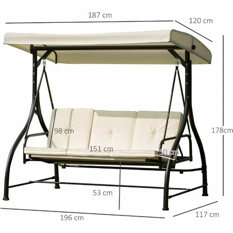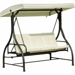 This Outsunny swing chair is a welcome addition to any outdoor living space. It has a capacity to seat three people so you can enjoy with your friends. The adjustable canopy will keep you covered from sunlight and light rain. The seat and back cushion is padded for comfort – the back can be folded flat to transform this into a bed.
