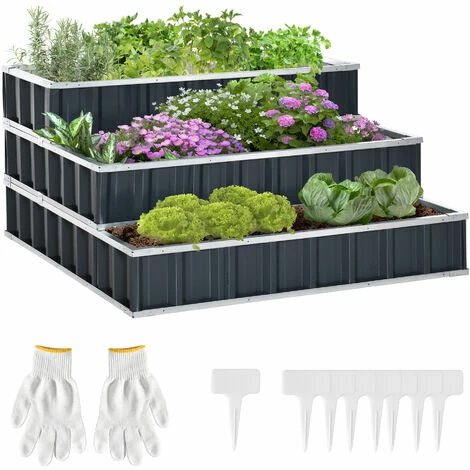 Looking to plant flowers and vegetables, but only have a space to do it? Then check out this 3-level metal garden bed from Outsunny! Each tier is connected by the fastener connectors, and you can take the connectors down to make the whole raised garden beds into 3 individual garden beds and get a more cultivated area. Or used as 3 tiers raised bed to plant 3 different plants. Check out this practical, stylish, and space-saving plant stand, and let your leafy friends grow!