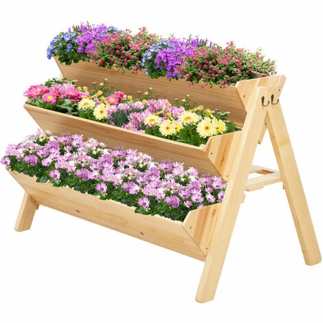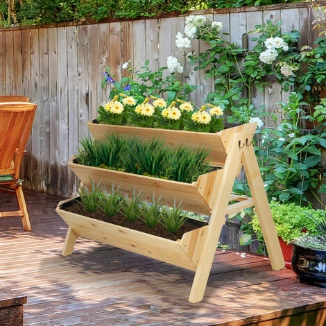 The 3 tier raised beds for garden vegetables from Outsunny can be a good choice for those who like planting flowers or vegetables. 3 layers of flower stand are made with high quality fir wood for stability and durability. Non-woven fabric in the planting box for preventing soil erosion and holes on the bottom of flower stand for the outflow of excess water. You can place your tools on clapboard or hang them on the hooks of the side. Let this practical raised wooden planter dress up your garden!