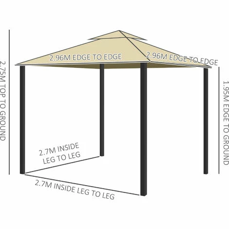 ● Overall Dimension: 2.96L x 2.96W x 2.75H m