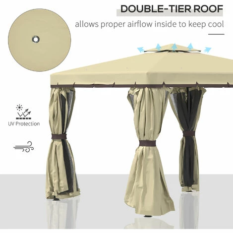 This Outsunny patio gazebo is a great way to expand outdoor space with elegance. A blend of aluminium and steel for the frame makes it extra sturdy, formed into a spacious 3m x 3m size – you can host plenty of people at once. The polyester canopy creates mild shelter below, with its two-tier design helping to promote airflow in and out. Curtains create privacy, each with inner netting to shield you from annoying bugs and more. The garden pavilion is completed with anchoring accessories.