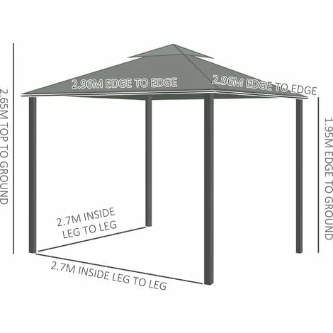 ● Overall Dimension: 2.96L x 2.96W x 2.75H m