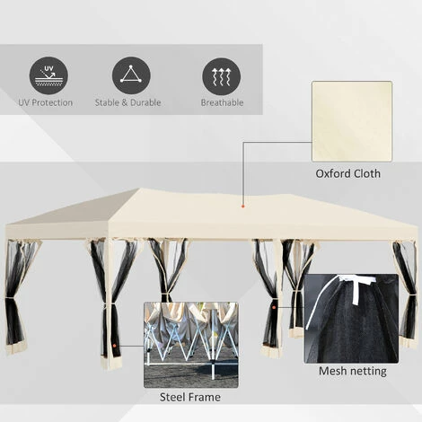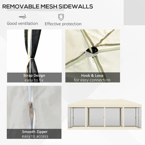Grab your favourite drink and enjoy the shade of freedom with this Outsunny 3m x 6m gazebo with sides. The sturdy frame adds a durable place for you to relax in the shade. This garden shelter is perfect for any occasion such as family gatherings, picnics, camping or tailgates. The mesh sidewalls make it great for keeping comfortable in, and you can enjoy the outdoors even if the sun goes down. Save time to set up, you will have more time to enjoy yourself with stylish Outsunny pop up gazebo.