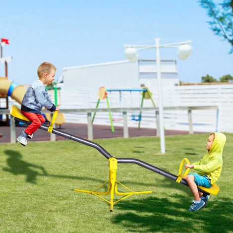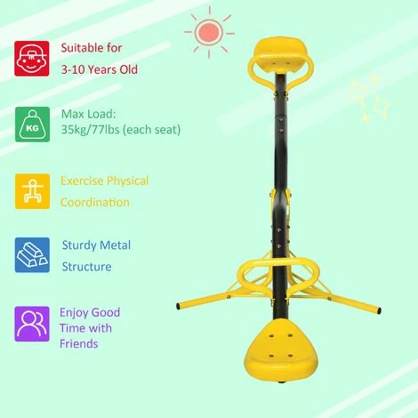 Bring elements of the playground to your home, thanks to this kids seesaw from Outsunny. It goes up and down, like a traditional seesaw, however this one also spins like a merry-go-round, bringing extra fun. Its tripod base keeps it stable when in use, whilst the metal frame is strong and durable – suitable for outdoors. With smooth handles and moulded plastic seats, children can play comfortably, enjoying hours of fun.