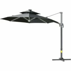 Innovation meets protection with this three-in-one Cantilever parasol with base included from Outsunny. It is fitted with solar-powered LED lights on the rib, meaning it will illuminate evenings and nights beautifully.The Cantilever design is impressive, beautiful and super easily to use. The large canopy fixes to four different angles and spins around a full 360° so you can find a position best for you, with a crank handle to open and close. This is all you need for the Summer and much, much more.