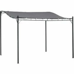 Give yourself a spot to take shade and shelter outdoors with this lean to pergola from Outsunny. It is crafted into a 250 x 297cm design, consisting of a taller back and short front, with a waved connecting frame covered with a top 180gsm polyester canopy, providing shelter against direct sunlight. With an elegant scroll design on the front, the wall mounted canopy is finished with eight drainage holes on the top to prevent water accumulation and with eight ground stakes to pin to the ground.