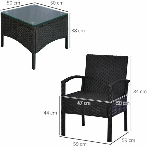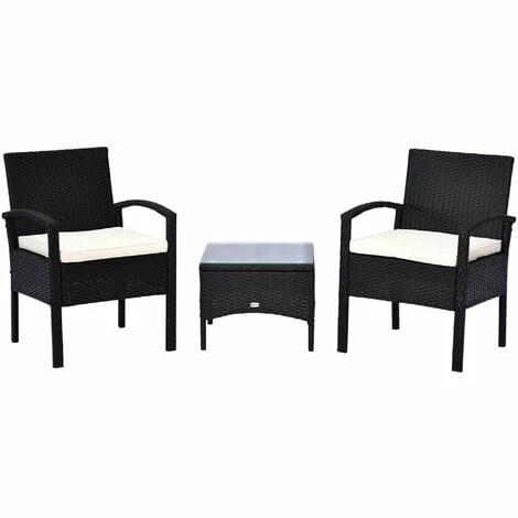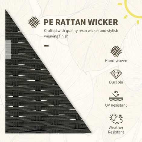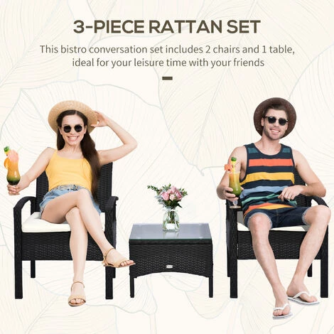 Outsunny rattan bistro set for 2 with contemporary looks, offers you a comfortable and stunning outdoor lounging experience. This conversation set will let you and your family sit back, relaxing and enjoy your great outdoor time. It is ideal for the pool side, deck or patio and many more. Featuring steel frame construction for durable use, this rattan bistro set can stand for both the test of time and temperature.