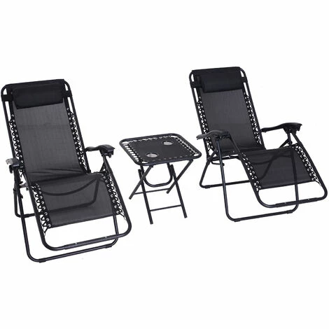 Lounging with a friend has never been so relaxing, thanks to the garden recliner chairs set of 3 from Outsunny. Formed of two reclining garden chairs and a matching table, you’ve got everything you need in one. Powder-coated steel frame for strength, with a cushioned headrest for comfort. The backs recline back to any position. Comes complete with a handy side table.