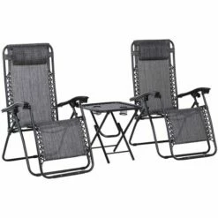Lounging with a friend has never been so relaxing, thanks to the garden recliner chairs set of 3 from Outsunny. Formed of two reclining garden chairs and a matching table, you’ve got everything you need in one. Powder-coated steel frame for strength, with a cushioned headrest for comfort. The backs recline back to any position. Comes complete with a handy side table.