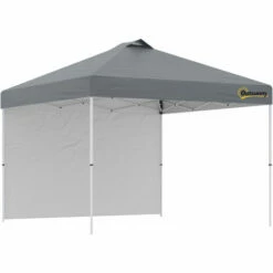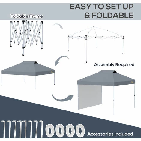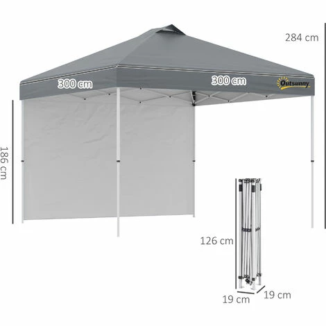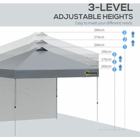 Create a shaded/open shelter area when you require it, thanks to this easy-up garden tent from Outsunny. The powder coated metal frame means a strong structure, it is adjustable to three different levels between 264cm and 284cm to set to a level of your preference. The fabric canopy creates a safe shelter to stand under, with one side wall to shield and create a semi-private atmosphere. It comes with a wheeled bag to move around easily.