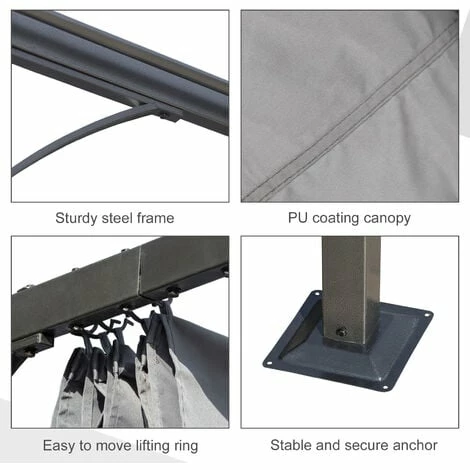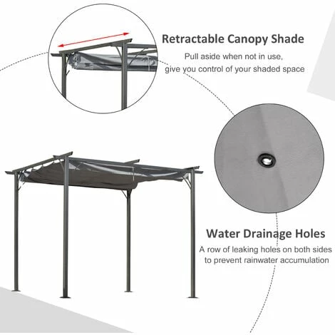 Whether it’s for use in the garden or on the patio, this Outsunny pergola with retractable roof is ideal for creating extra space for dining, socialising and relaxing. With an anti-rust steel frame that is strong and sturdy, this metal gazebo features a retractable canopy roof which opens and closes easily – perfect for the interchangeable weather. Holes allow any water to drain instantly, stopping any build up from occurring and falling on you. It’s a great addition for every outdoor space.
