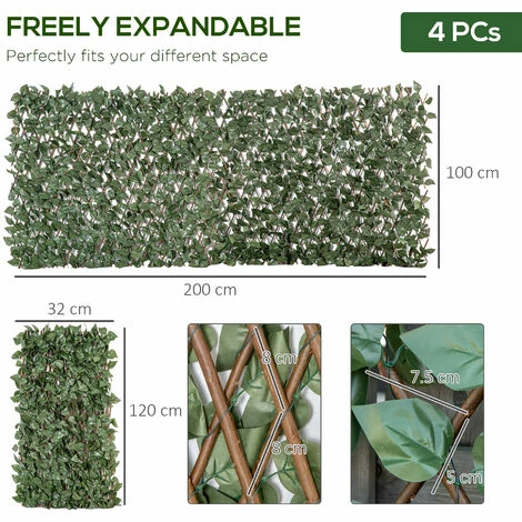 Bring beautiful nature to any place you desire, will full thanks to this Outsunny 4-piece artificial leaf wall. 32cm to 200cm expandable, it’s easy to set to a length most suitable for you – great for covering smaller and larger areas. Packed with 350 fake laurel leaves, in a bright, weather-resistant green tone, this artificial fence looks as real as can be, without the tedious upkeep. So, spend less time on pruning and caring – more time on other garden areas.