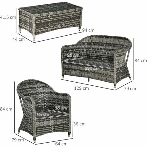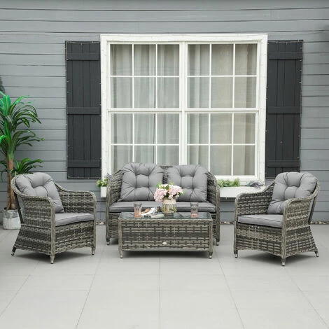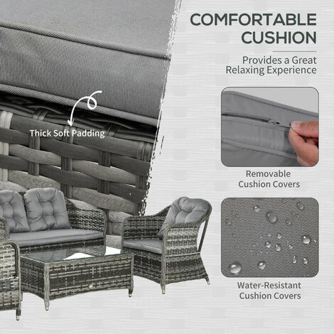 Bring the whole family together outdoors this summer, thanks to this conservatory furniture from Outsunny. It comes with two chairs, a double sofa and table. The frames of the garden furniture sets are made from tough and durable aluminium, wrapped in weather and fade resistant rattan for double the protection and durability. Outdoor furniture is easy to clean to keep it fresh and beautiful. Finished with seat and back cushions on each piece – you’ll find it hard to get out once settled in.