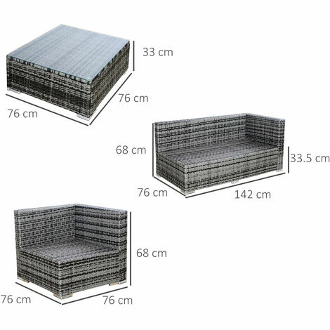 This garden sofa set from Outsunny is a solution for outdoor activities. The rattan garden furniture sets will give you enough space to relax with your friends and family. The rust-resistant aluminum frame ensures superior strength and durability. UV and fade-resistant PE rattan are strong enough to withstand all weather conditions. The seat and back with thick cushions and pillows give you a comfortable sitting experience. The coffee table features a tempered glass tabletop for easy clean-up.