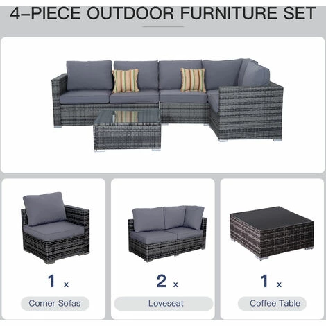 • 4-piece garden sofa set with 2 loveseat sofas, 1 corner sofa and 1 coffee table