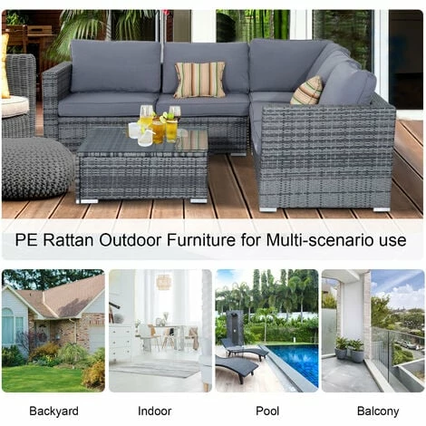 • Material: Aluminum frame, PE rattan, 220g/㎡ polyester, 5mm tempered glass