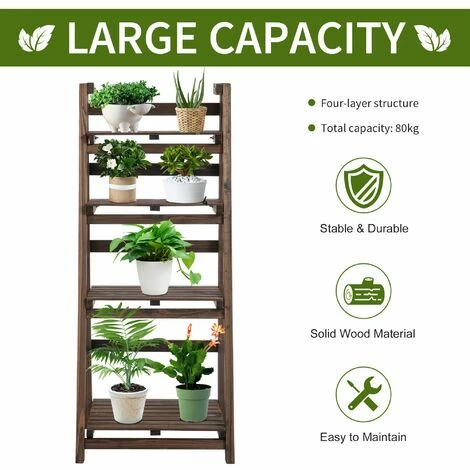 The flower stand from Outsunny will bring you both practical and decorative purposes. Made with solid wood, stable and durable. This tiered plant stand provides ample space to display your flowers. You can use this plant shelf as an indoor storage display rack to add some green in the house, or use it outdoors to make plants freely breathe. The foldable humanized design corner plant stand provides more room for decoration in your living space.