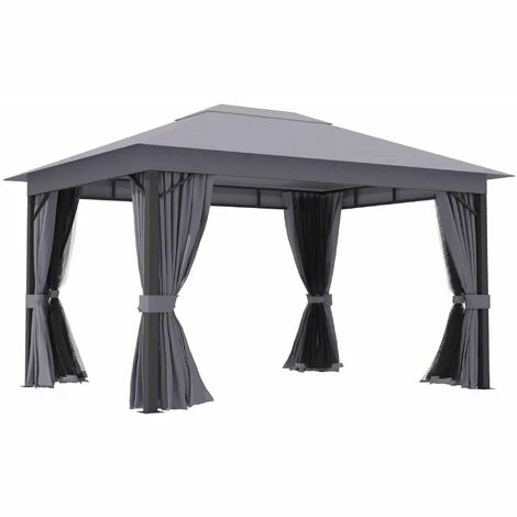 This 4 x 3(m) spacious hot tub gazebo with sides from Outsunny is a great way to upgrade your outdoor space with elegance. You can entertain your friends and family members to hold the party or just relax and enjoy the conversation. It features the rust-resistant aluminium frame with the UV protection polyester canopy and 2 layer sidewalls for strength and full shade. You deserve some comfort in the sun: create your own personal oasis with our grey gazebo.