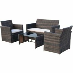 Bring a new lease of life into your garden with this conservatory furniture from Outsunny. Formed of four pieces, each of the two chairs, the two-seater sofa and the matching table are built with a galvanised steel frame for a tough, steady and durable structure, with PE wicker wrapped around tightly for protection against mild rain and UV fading. Wide and long in size, the outdoor furniture gives plenty of room for you relax, with padded seat cushions and high backs and armrests for comfort.
