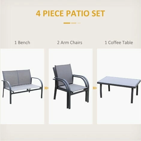 For a minimalistic approach to outdoor dining this season, opt for this four-piece metal garden furniture set from Outsunny. The outdoor sofa set includes a two-seater loveseat, two chairs and a matching table with texteline seats for you to sit comfortably. Smooth curved armrests give a relaxed look, whilst the high and slightly bent backs provide support when you lean back. A tempered glass panel on the table completes this patio set, a beautiful and smooth surface which can be wiped clean easily.