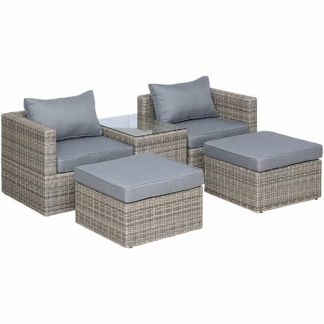 Look forward to those lazy afternoons ahead with this conservatory furniture from Outsunny. Totalling five pieces, the garden furniture sets include two corner chairs, two footstools and a tall table, with solid aluminium forming the base frame for a robust structure. Matching in height with the chairs, the square table is the perfect spot for keeping everything you need near, with beautiful glass surface placed on top. 2 seater rattan sofa to relax under the sun for seasons to come.