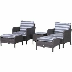 Sit back and relax in complete comfort with this 2 seater rattan sofa from Outsunny. Formed of five pieces, the set features two armchairs, two footstools and a matching coffee table. Made from hand woven PE rattan, each piece is weather resistant and low maintenance, with a steel frame underneath for extra support and stability. Two plush cushions on each chair ensure you’ll be relaxing comfortably for hours this garden sofa set is a fantastic combination, comfortable and minimal hassle.