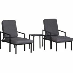Simple, yet extremely comfortable, there’s nothing to dislike about Outsunny garden recliner chairs set of 5. Using metal for a base, the outdoor recliner chair is tough for use outdoors, the matte black frames are kept to a minimal-looking design which allows them to blend in with your other outdoor furniture effortlessly. A matching table completes this set, providing you with a place to keep anything you need close to you. A fantastic set to welcome your garden and home for the season ahead.
