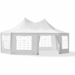 This is an extraordinary large, bright and spacious octagonal high roof party tent, with top quality galvanized steel frame and durable water resistant polyester cover. It looks gorgeous and elegant with church windows and pagoda shape.